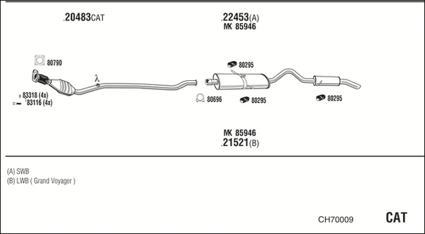 CHRYSLER VOYAGER / GRAND VOYAGER III (GS_, NS_) 2.4 i - Výfukový systém - kompletní od 1/1995 do 3/2001, 2429 ccm, 111 kW, 151 hp, B00, velkoprostorová limuzína