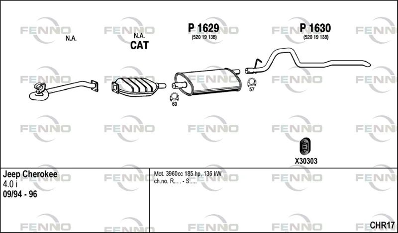 JEEP CHEROKEE (XJ) 4.0 i 4x4 - Výfukový systém - kompletní od 1/1995 do 9/2001, 3964 ccm, 131 kW, 178 hp, ERH, uzavřený terénní vůz