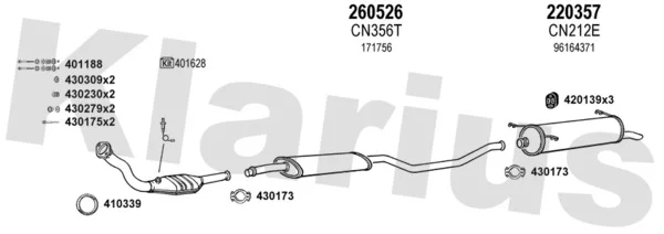 CITROËN XANTIA (X1_, X2_) 2.0 i 16V - Výfukový systém - kompletní od 6/1995 do 4/2003, 1998 ccm, 97 kW, 132 hp, RFV (XU10J4R), Šikmá zadní část