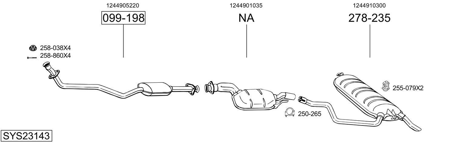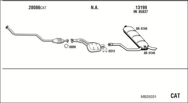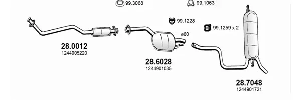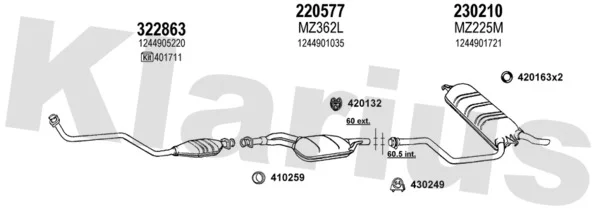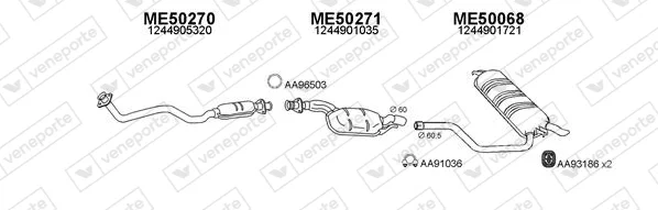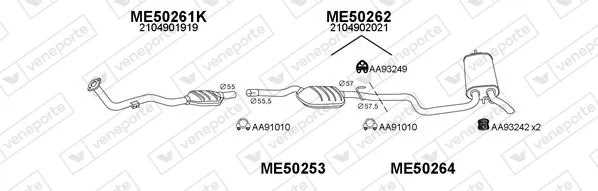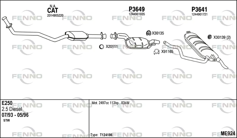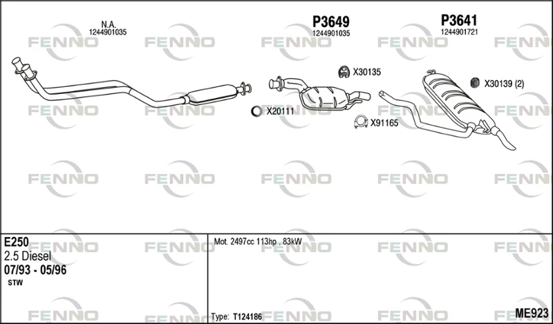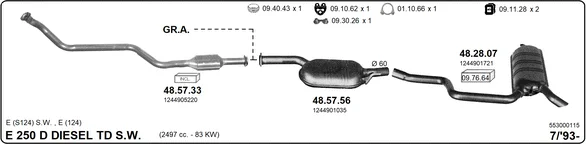 MERCEDES-BENZ E-CLASS T-Model (S124) E 250 TD (124.186) - Výfukový systém - kompletní od 6/1993 do 6/1996, 2497 ccm, 83 kW, 113 hp, OM 605.911, kombi