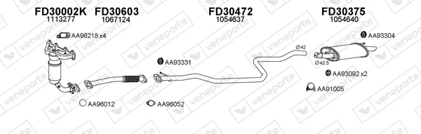 FORD FIESTA IV (JA_, JB_) 1.3 i - Výfukový systém - kompletní od 8/1995 do 1/2002, 1299 ccm, 37 kW, 50 hp, JJA, JJC, JJE, JJJ, JJK, JJM, Šikmá zadní část