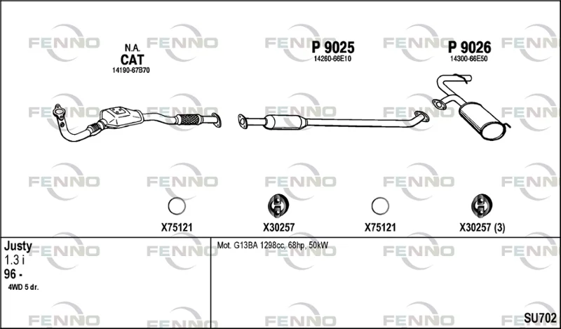 SUBARU JUSTY II (JMA, MS) 1.3 GX 4x4 - Výfukový systém - kompletní od 10/1995 do 11/2003, 1298 ccm, 50 kW, 68 hp, EF13, Šikmá zadní část