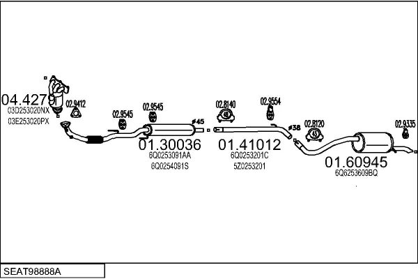 SEAT IBIZA IV (6J5, 6P1) 1.2 - Výfukový systém - kompletní od 7/2009 do 5/2015, 1198 ccm, 44 kW, 60 hp, CGPB, Šikmá zadní část