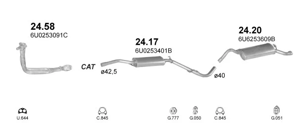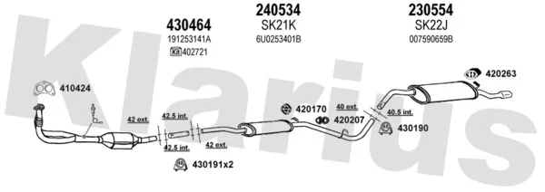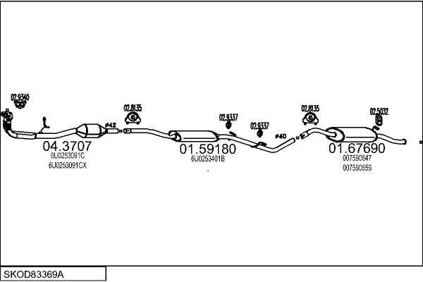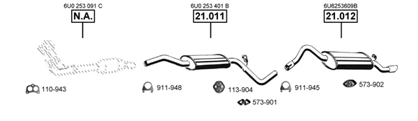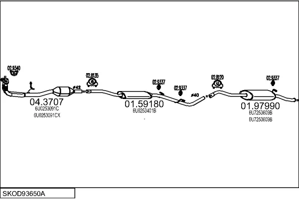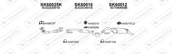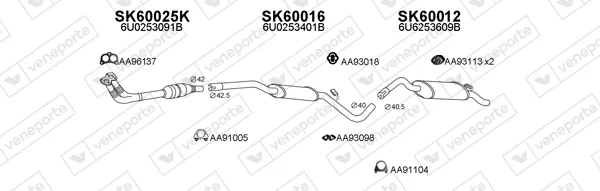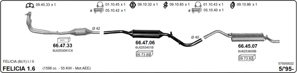 SKODA FELICIA I (6U1) 1.6 - Výfukový systém - kompletní od 8/1995 do 3/1998, 1598 ccm, 55 kW, 75 hp, AEE, Šikmá zadní část