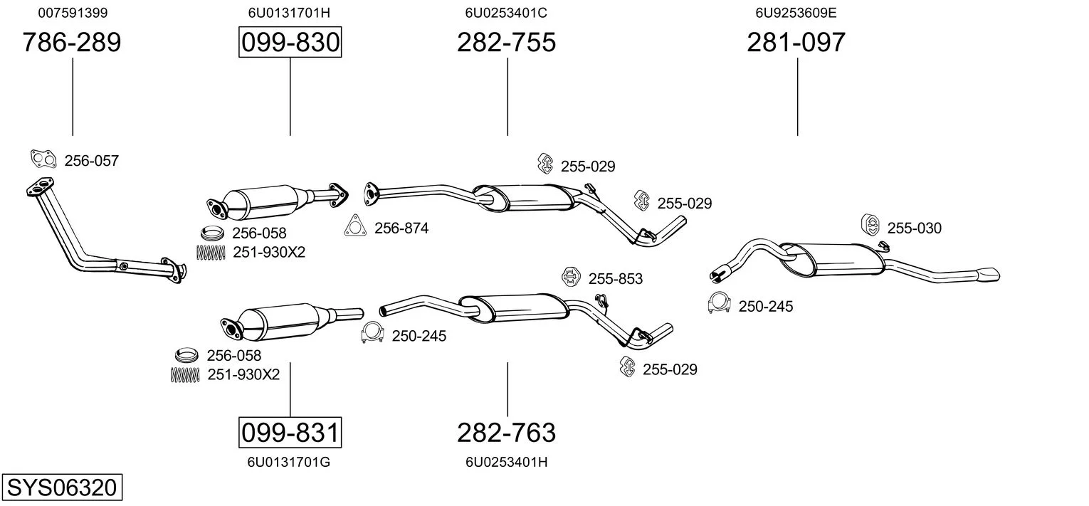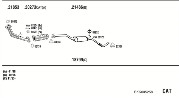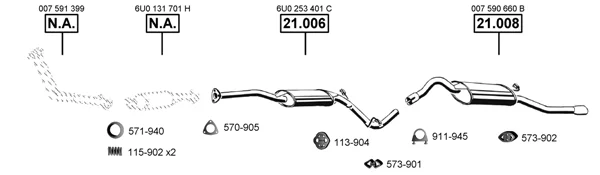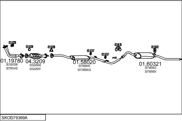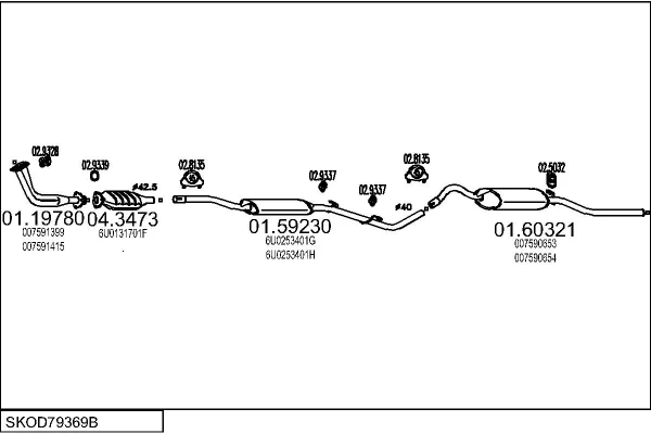 SKODA FELICIA I kombi (6U5) 1.3 - Výfukový systém - kompletní od 8/1995 do 3/1998, 1289 ccm, 50 kW, 68 hp, 136B, AMH, kombi