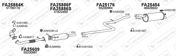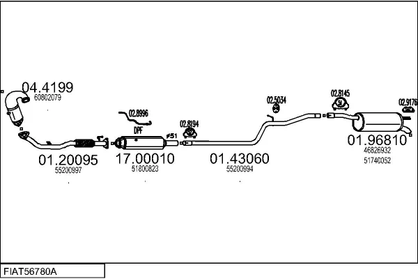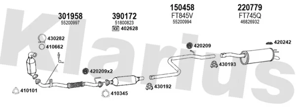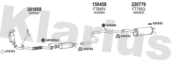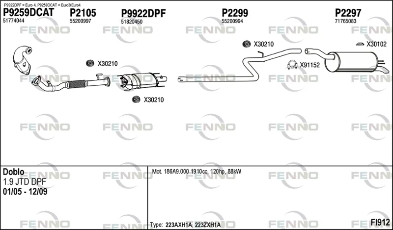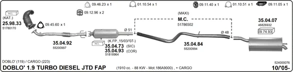 FIAT DOBLO Skříňová/velkoprostorová limuzína (223_) 1.9 JTD Multijet - Výfukový systém - kompletní od 12/2006, 1910 ccm, 88 kW, 120 hp, 186 A9.000, Skříňová/velkoprostorová limuzína
