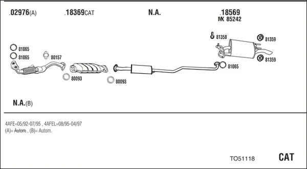 TOYOTA COROLLA (_E10_) 1.6 Si (AE101_, AE101R) - Výfukový systém - kompletní od 9/1995 do 4/1997, 1587 ccm, 84 kW, 114 hp, 4A-FE, limuzína