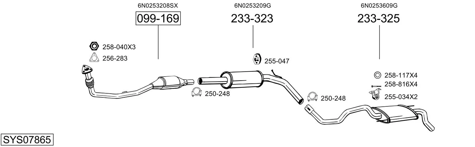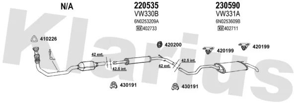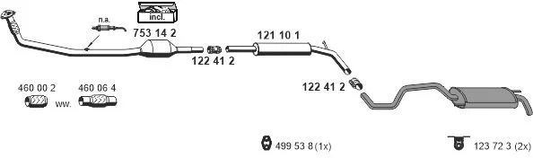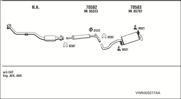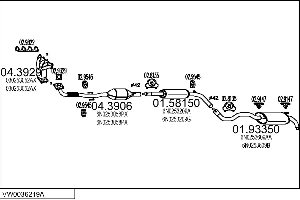 VW POLO III (6N1) 55 1.4 - Výfukový systém - kompletní od 8/1995 do 10/1999, 1390 ccm, 40 kW, 55 hp, AEX, ANX, Šikmá zadní část