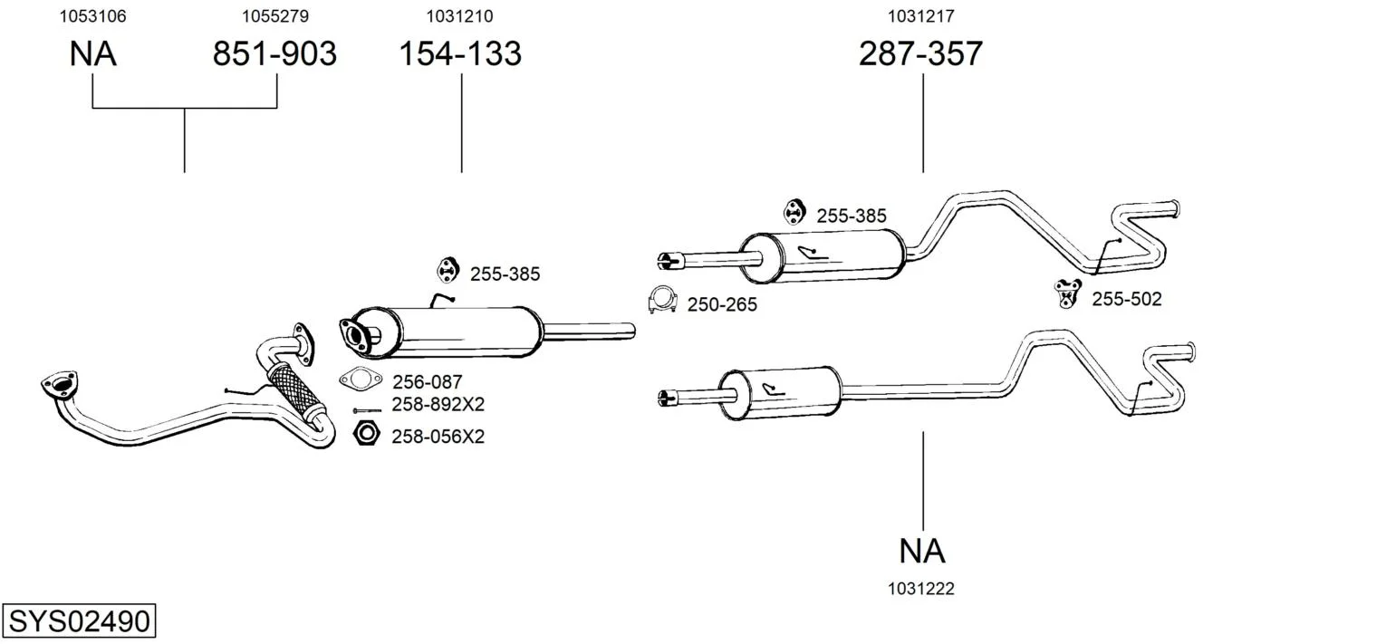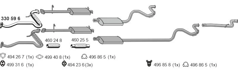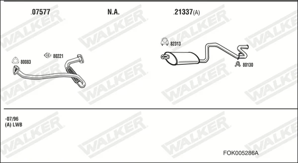 FORD TRANSIT autobus (E_ _) 2.5 TD (ECL, EDL, EDS, ESL, ESS, EUS) - Výfukový systém - kompletní od 7/1994 do 3/2000, 2496 ccm, 74 kW, 100 hp, 4EB, 4EC, autobus