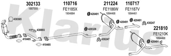 FORD TRANSIT CONNECT V408 Skříňová/velkoprostorová limuzína 1.6 TDCi - Výfukový systém - kompletní od 9/2013, 1560 ccm, 70 kW, 95 hp, TZGA, TZGB, Skříňová/velkoprostorová limuzína