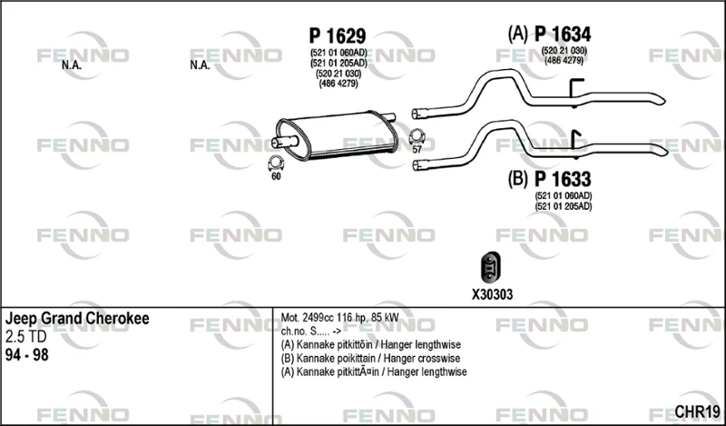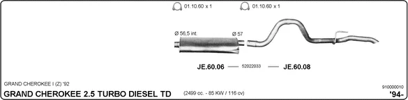 JEEP GRAND CHEROKEE I (ZJ, ZG) 2.5 TD 4x4 (Z) - Výfukový systém - kompletní od 10/1995 do 4/1999, 2499 ccm, 85 kW, 115 hp, ENC, uzavřený terénní vůz