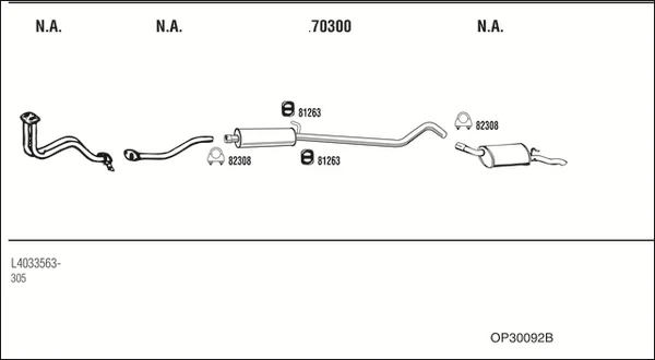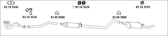 OPEL CORSA A Šikmá zadní část (S83) 1.3 S (F08, M08, F68, M68) - Výfukový systém - kompletní od 9/1982 do 10/1989, 1297 ccm, 51 kW, 70 hp, 13 SB, Šikmá zadní část