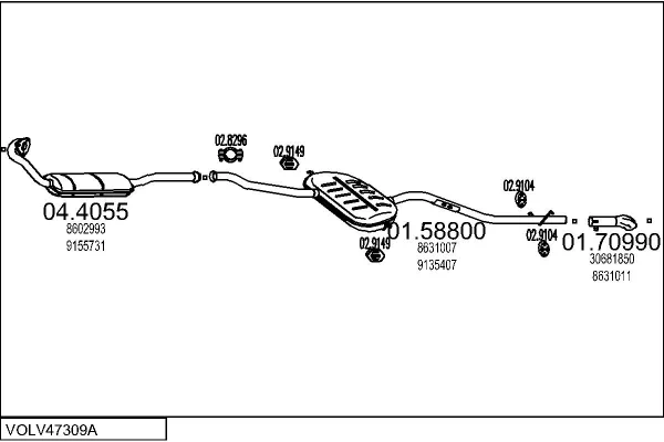 VOLVO 850 kombi (855) 2.5 TDI - Výfukový systém - kompletní od 8/1995 do 12/1996, 2460 ccm, 103 kW, 140 hp, D 5252 T, kombi