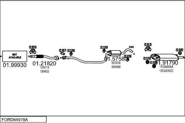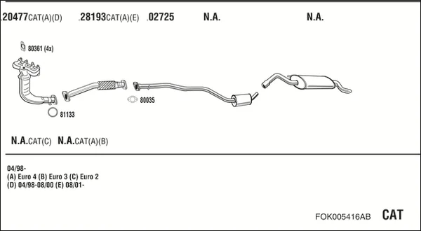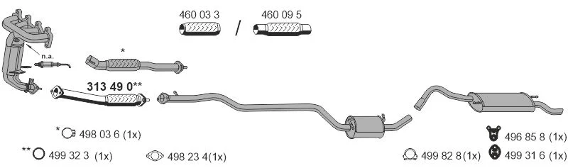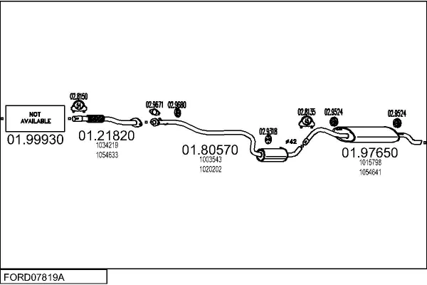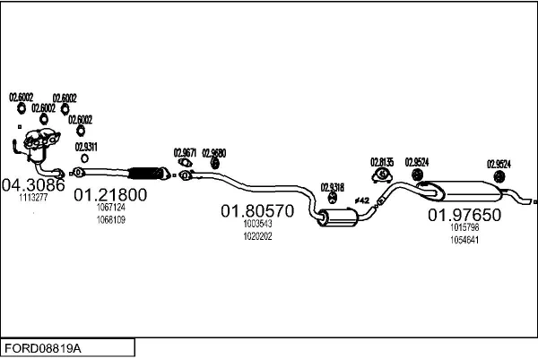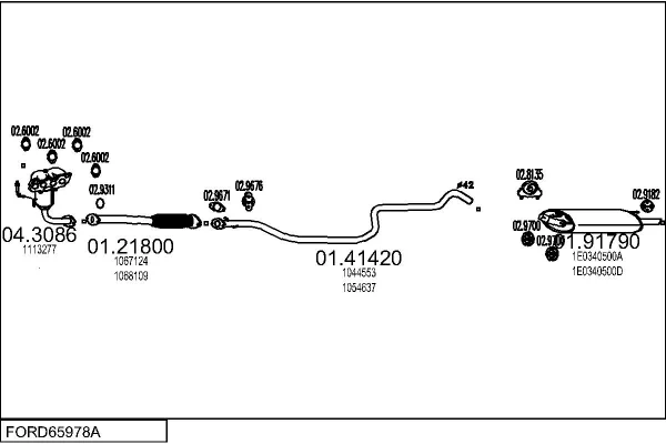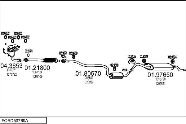 FORD FIESTA Skříňová/velkoprostorová limuzína (J5_, J3_) 1.3 - Výfukový systém - kompletní od 2/1996 do 8/2003, 1299 ccm, 44 kW, 60 hp, J4C, J4J, J4L, J4Q, J4R, J4T, Skříňová/velkoprostorová limuzína
