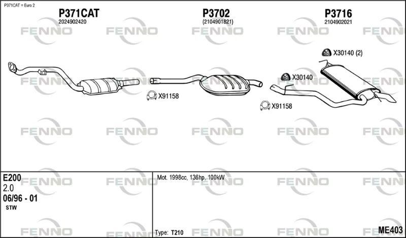 MERCEDES-BENZ E-CLASS T-Model (S210) E 200 T (210.235) - Výfukový systém - kompletní od 6/1996 do 8/2000, 1998 ccm, 100 kW, 136 hp, M 111.942, kombi