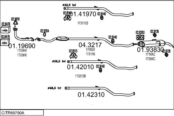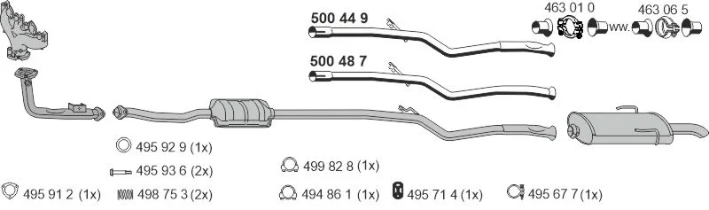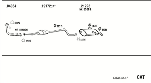 CITROËN SAXO (S0, S1) 1.0 X - Výfukový systém - kompletní od 5/1996 do 11/1998, 954 ccm, 33 kW, 45 hp, CDY (TU9M), Šikmá zadní část
