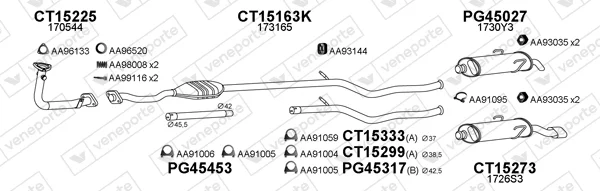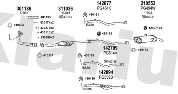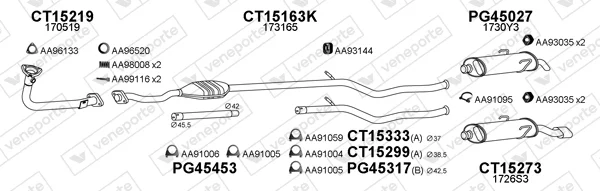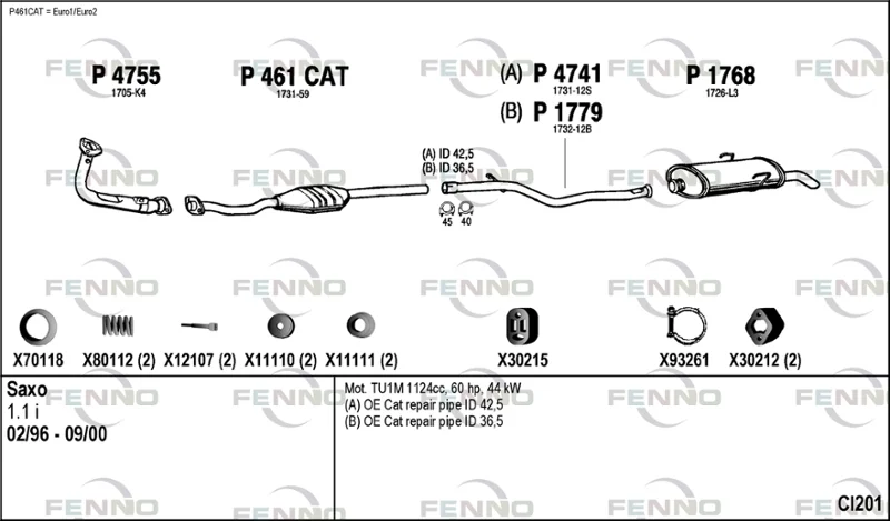 CITROËN SAXO (S0, S1) 1.1 X, SX - Výfukový systém - kompletní od 5/1996 do 9/2003, 1124 ccm, 40 kW, 54 hp, HDZ (TU1M), Šikmá zadní část