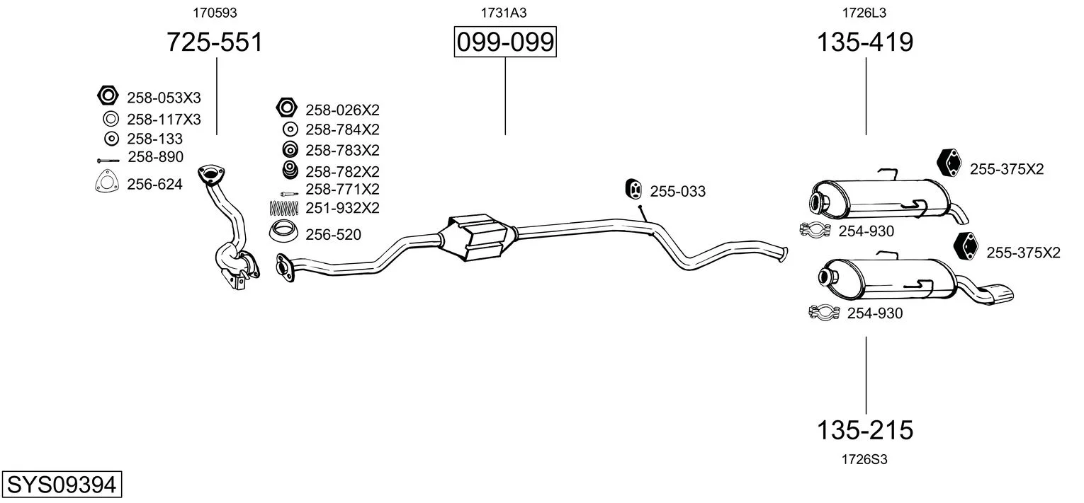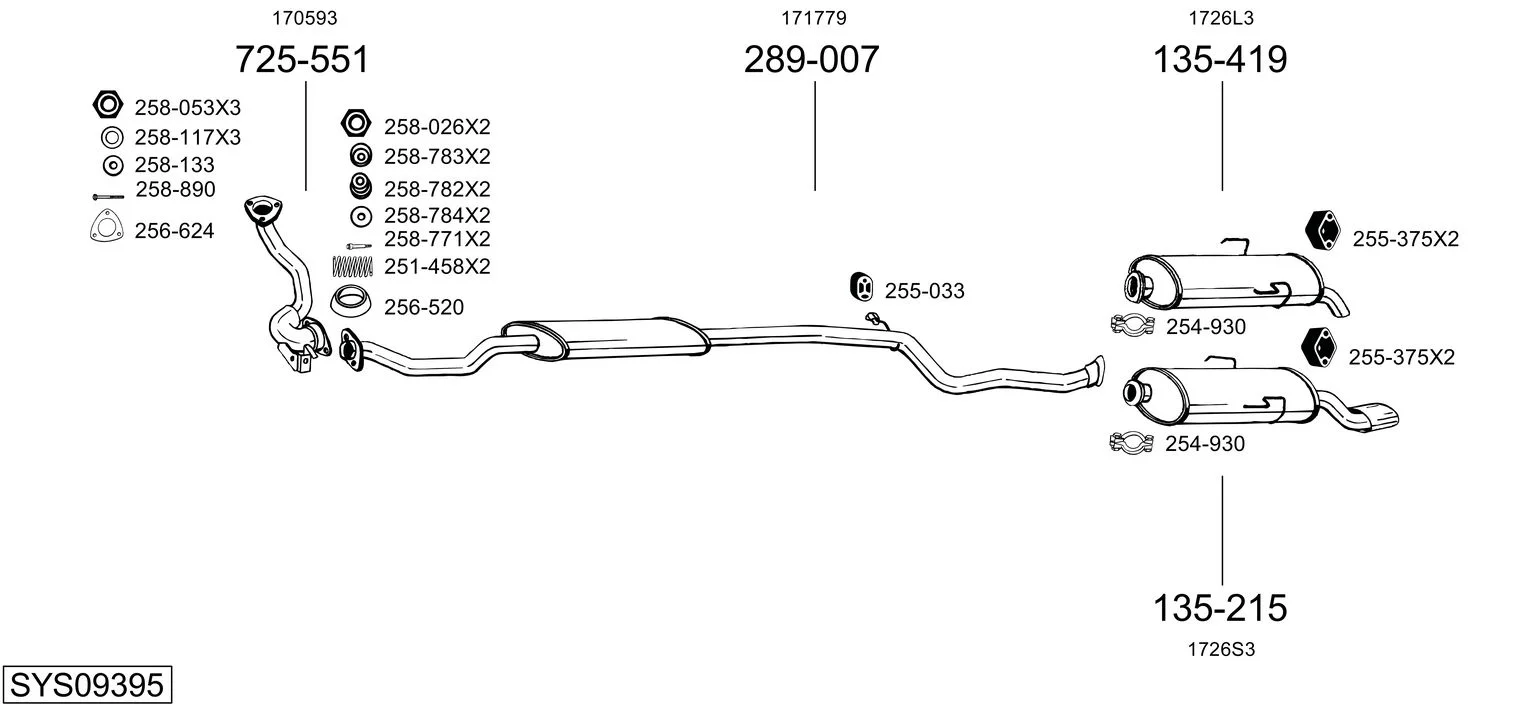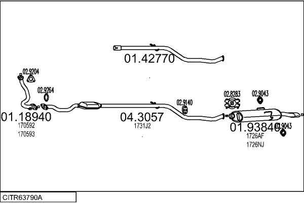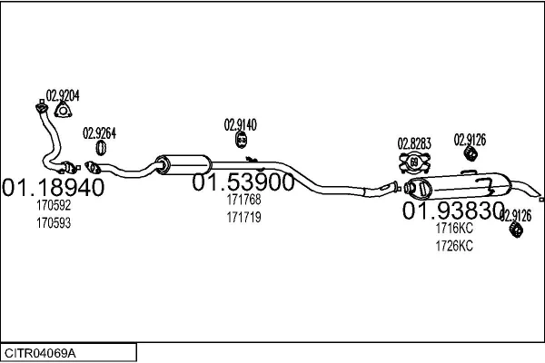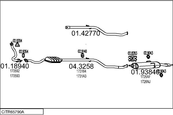 CITROËN SAXO (S0, S1) 1.5 D - Výfukový systém - kompletní od 9/1996 do 9/2003, 1527 ccm, 40 kW, 54 hp, VJY (TUD5), Šikmá zadní část