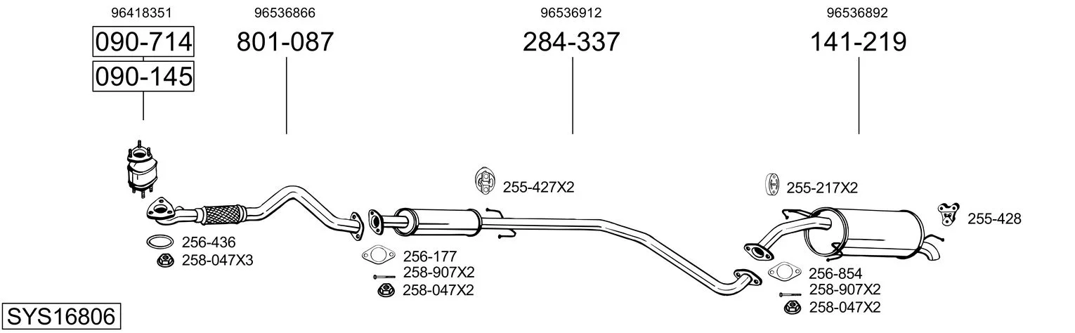 CHEVROLET AVEO / KALOS Šikmá zadní část (T250, T255) 1.2 - Výfukový systém - kompletní od 6/2006, 1150 ccm, 53 kW, 72 hp, LY4, Šikmá zadní část