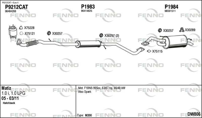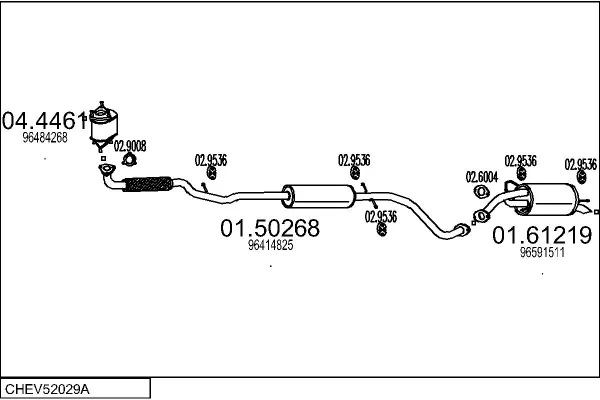 CHEVROLET SPARK 1.0 SX - Výfukový systém - kompletní od 5/2005, 995 ccm, 49 kW, 67 hp, LQ4(61CUL4), Šikmá zadní část