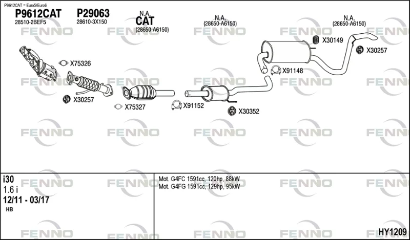 HYUNDAI i30 (GD) 1.6 - Výfukový systém - kompletní od 12/2011 do 12/2015, 1591 ccm, 95 kW, 129 hp, G4FC, Šikmá zadní část