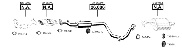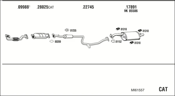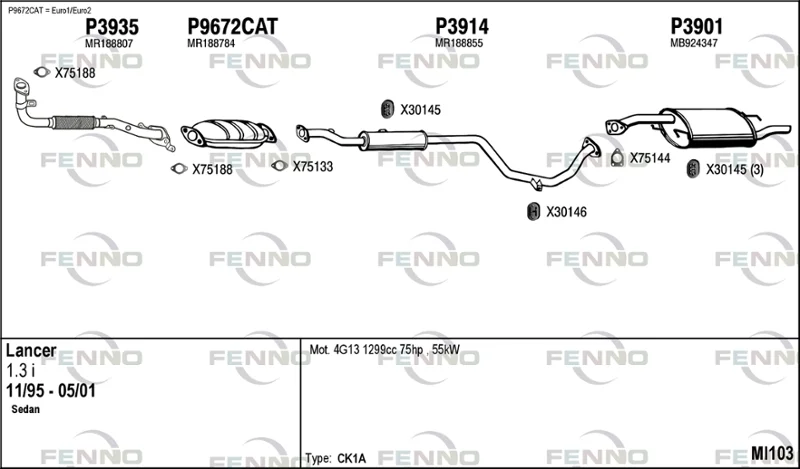 MITSUBISHI LANCER VI (CJ_, CP_) 1.3 12V (CK1A) - Výfukový systém - kompletní od 12/1995 do 8/2003, 1299 ccm, 55 kW, 75 hp, 4G13 (12V), limuzína