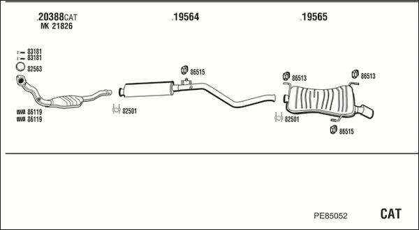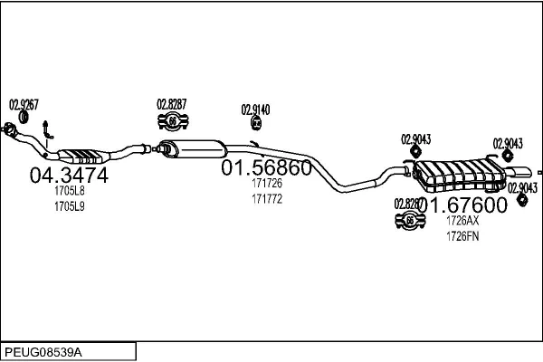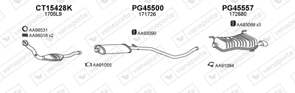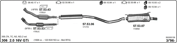 PEUGEOT 306 Šikmá zadní část (7A, 7C, N3, N5) 2.0 S16 - Výfukový systém - kompletní od 6/1996 do 5/2001, 1998 ccm, 120 kW, 163 hp, RFS (XU10J4RS), Šikmá zadní část
