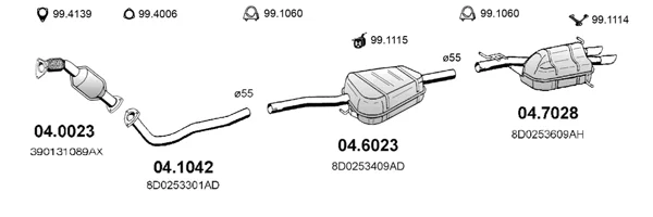 AUDI A4 B5 Avant (8D5) 1.9 TDI quattro - Výfukový systém - kompletní od 9/1996 do 9/2001, 1896 ccm, 81 kW, 110 hp, AFN, AVG, kombi