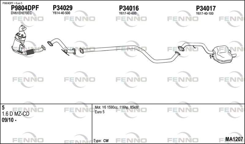 MAZDA 5 (CW) 1.6 CD - Výfukový systém - kompletní od 7/2010, 1560 ccm, 85 kW, 116 hp, Y650, Y655, Y6Y1, velkoprostorová limuzína