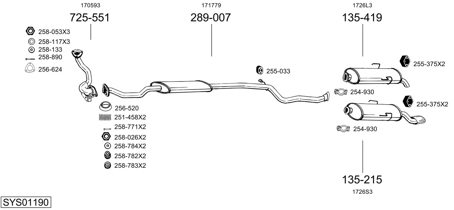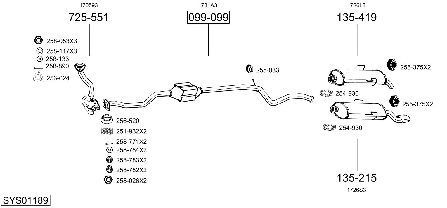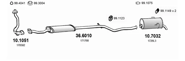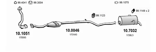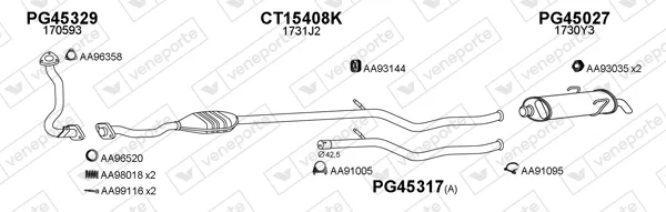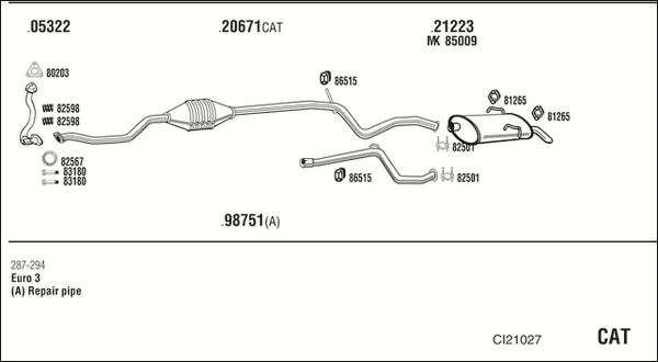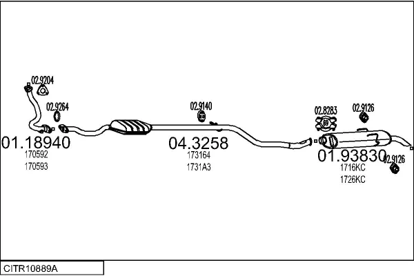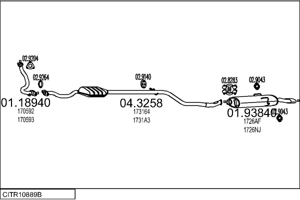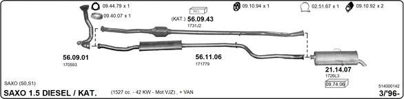 CITROËN SAXO (S0, S1) 1.5 D - Výfukový systém - kompletní od 9/1996 do 6/2001, 1527 ccm, 42 kW, 57 hp, VJZ (TUD5), Šikmá zadní část