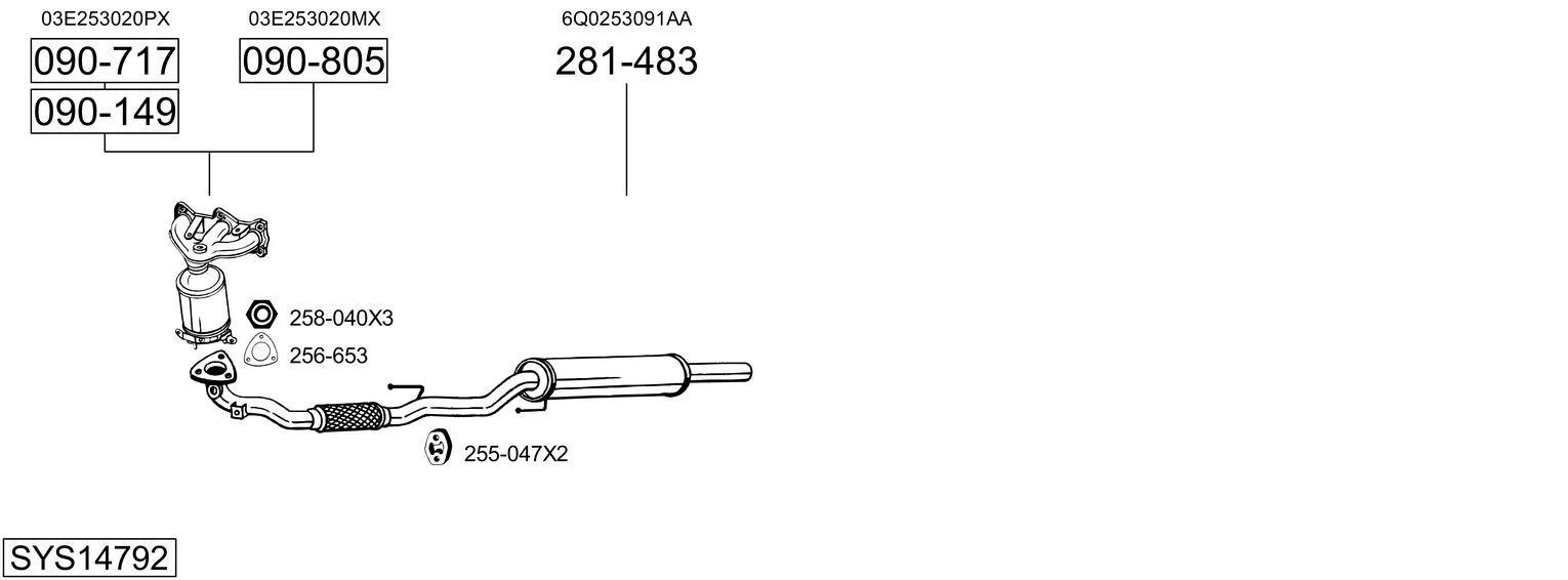 SKODA RAPID (NH3, NK3, NK6) 1.2 - Výfukový systém - kompletní od 7/2012 do 6/2015, 1198 ccm, 55 kW, 75 hp, CGPC, Šikmá zadní část