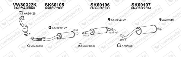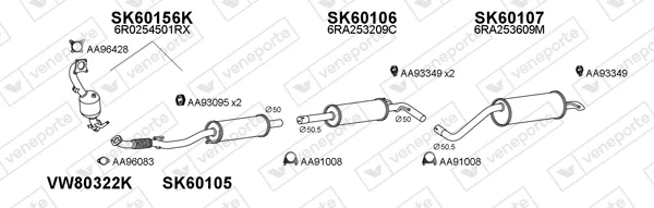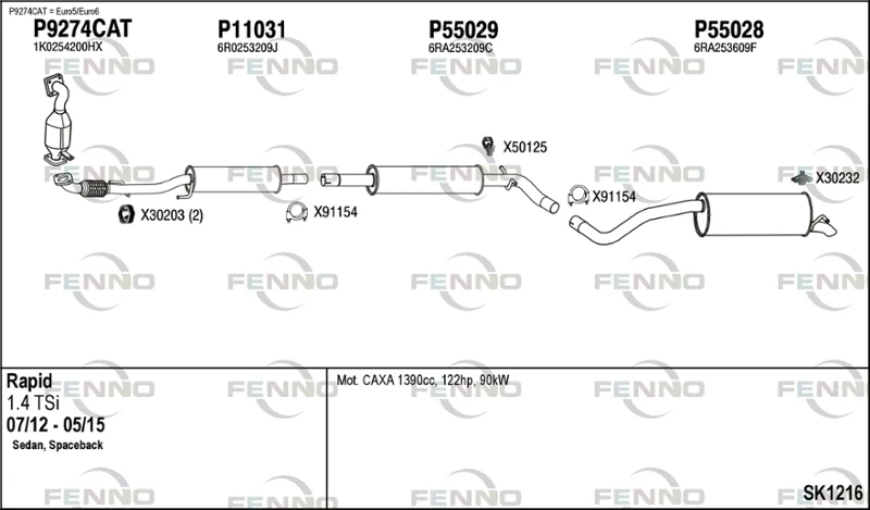 SKODA RAPID (NH3, NK3, NK6) 1.4 TSI - Výfukový systém - kompletní od 7/2012 do 6/2015, 1390 ccm, 90 kW, 122 hp, CAXA, Šikmá zadní část