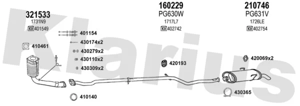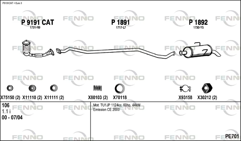 PEUGEOT 106 II (1A_, 1C_) 1.1 i - Výfukový systém - kompletní od 5/1996 do 7/2004, 1124 ccm, 44 kW, 60 hp, HDZ (TU1M+), HFX (TU1JP), Šikmá zadní část