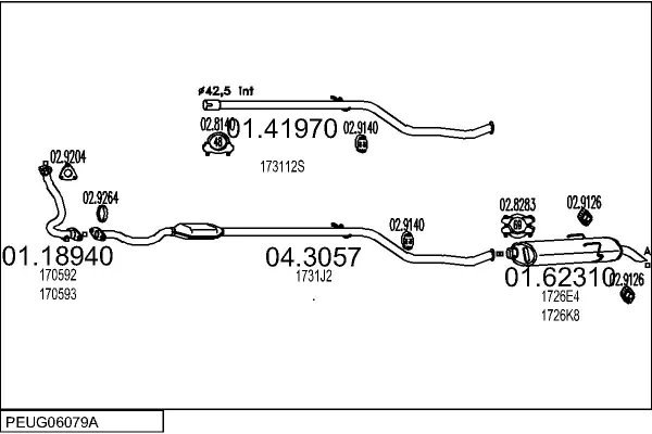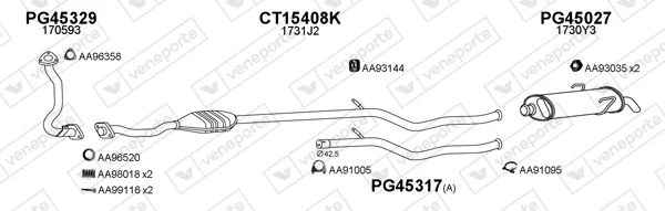PEUGEOT 106 II (1A_, 1C_) 1.5 D - Výfukový systém - kompletní od 5/1996 do 3/2001, 1527 ccm, 40 kW, 55 hp, VJY (TUD5), Šikmá zadní část