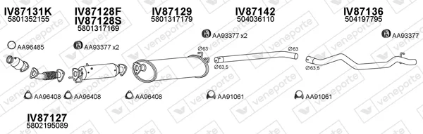 IVECO DAILY V valník/podvozek 35C17, 35S17, 40C17, 45C17, 50C17, 60C17, 65C17, 70C17 - Výfukový systém - kompletní od 9/2011 do 2/2014, 2998 ccm, 125 kW, 170 hp, F1CE3481C, F1CE3481K, valník/podvozek