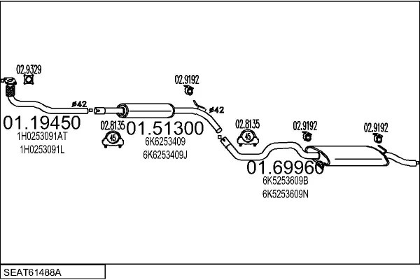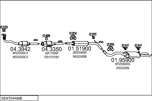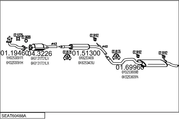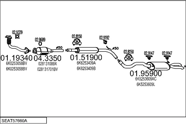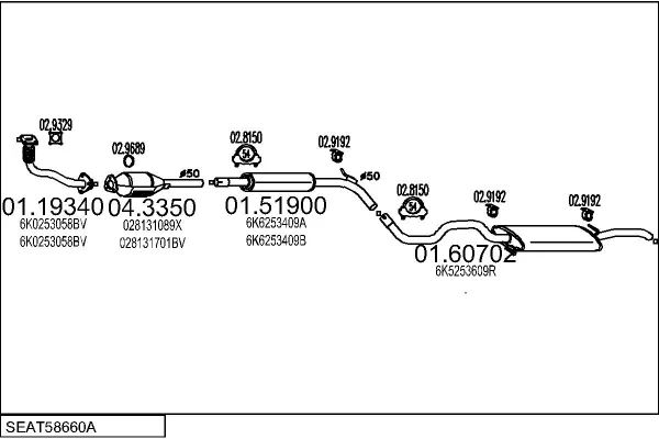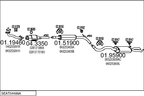 SEAT CORDOBA (6K1, 6K2) 1.9 SDI - Výfukový systém - kompletní od 8/1996 do 6/1999, 1896 ccm, 47 kW, 64 hp, AEY, limuzína
