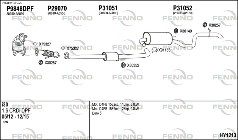 HYUNDAI i30 kombi (GD) 1.6 CRDi - Výfukový systém - kompletní od 6/2012, 1582 ccm, 81 kW, 110 hp, D4FB, kombi