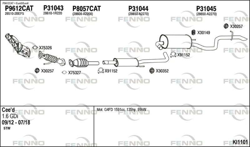 KIA CEE'D Sportswagon (JD) 1.6 GDI - Výfukový systém - kompletní od 9/2012 do 7/2018, 1591 ccm, 99 kW, 135 hp, G4FD, kombi