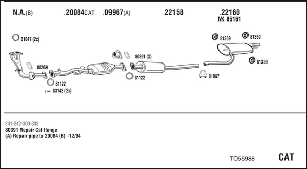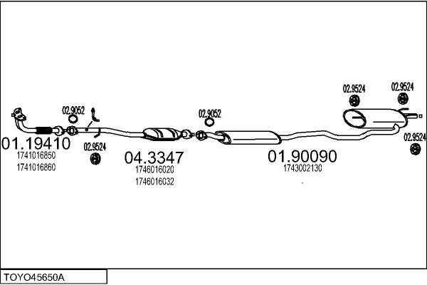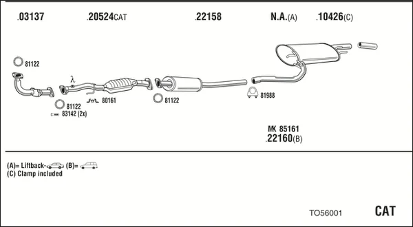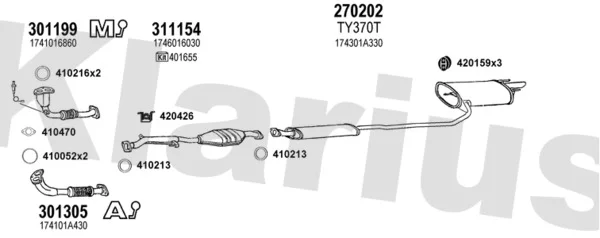 TOYOTA CARINA E VI (_T19_) 1.6 (AT190) - Výfukový systém - kompletní od 12/1993 do 9/1997, 1587 ccm, 85 kW, 116 hp, 4A-FE, Šikmá zadní část