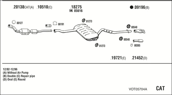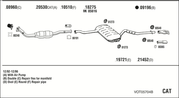VOLVO 850 kombi (855) 2.0 - Výfukový systém - kompletní od 2/1993 do 12/1996, 1984 ccm, 105 kW, 143 hp, B 5204 FS, kombi