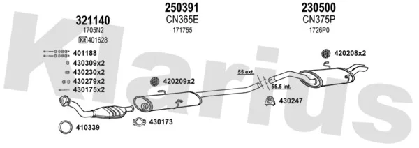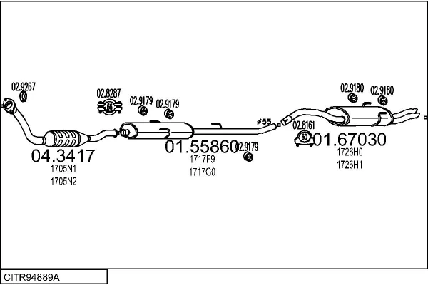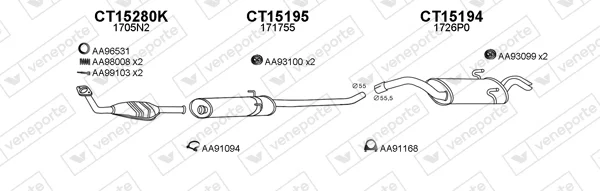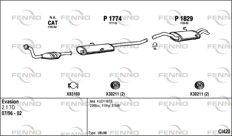 CITROËN EVASION velkoprostorová limuzína (22, U6) 2.1 TD - Výfukový systém - kompletní od 5/1996 do 7/2002, 2088 ccm, 80 kW, 109 hp, P8C (XUD11BTE), velkoprostorová limuzína