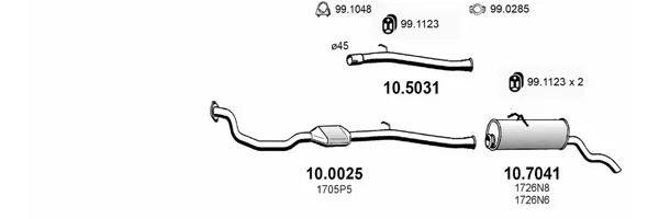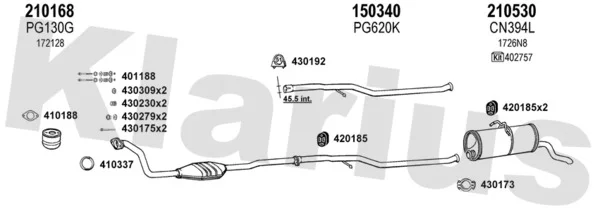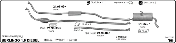 CITROËN BERLINGO / BERLINGO FIRST velkoprostorová limuzína (MF_, GJK 1.9 D (MFDJY) - Výfukový systém - kompletní od 7/1996 do 12/2003, 1905 ccm, 50 kW, 68 hp, D9B (XUD9A/L), DJY (XUD9A), velkoprostorová limuzína