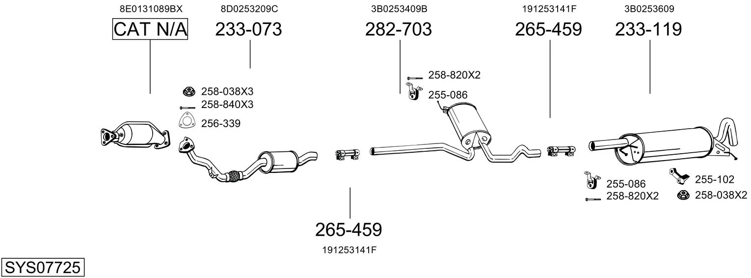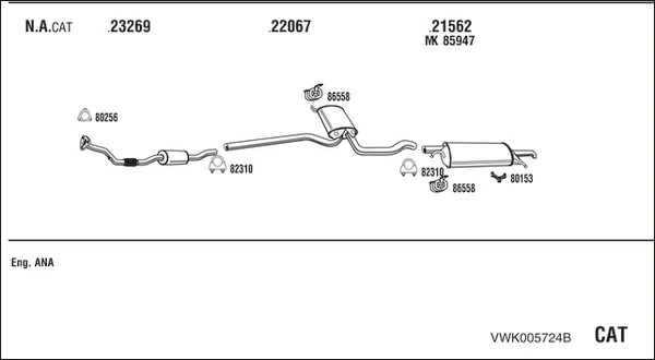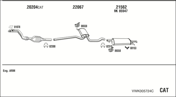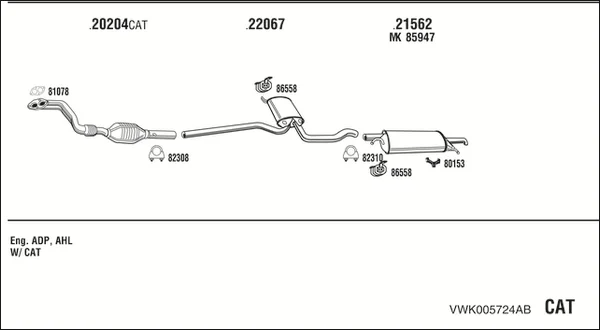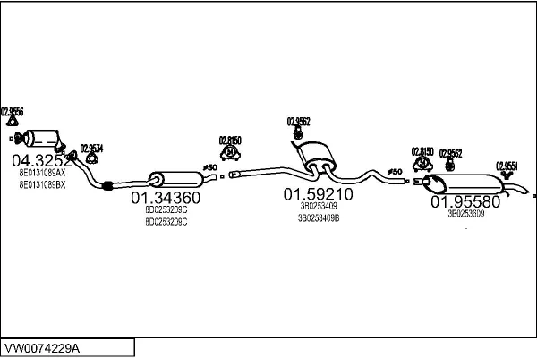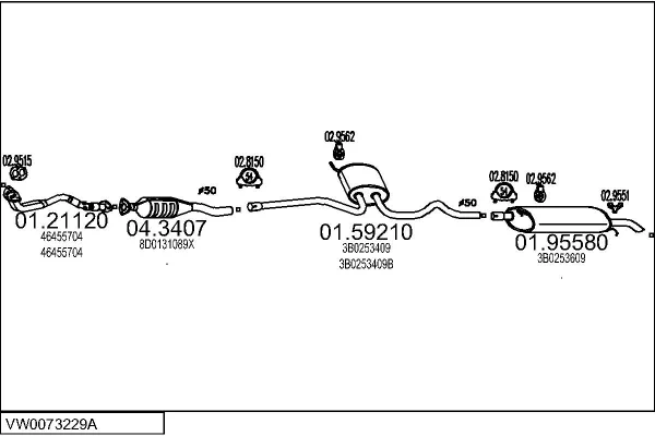 VW PASSAT B5 (3B2) 1.6 - Výfukový systém - kompletní od 10/1996 do 11/2000, 1595 ccm, 74 kW, 101 hp, ADP, AHL, ANA, ARM, limuzína
