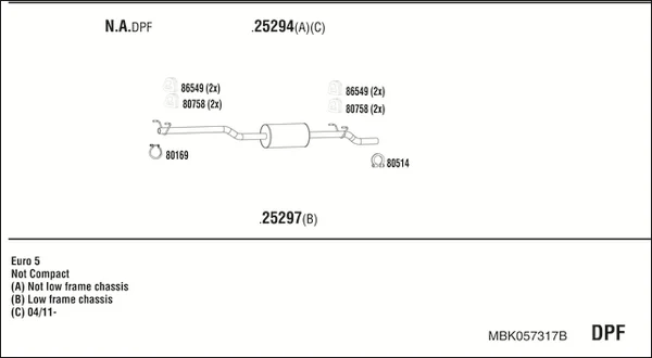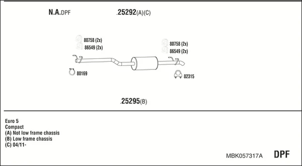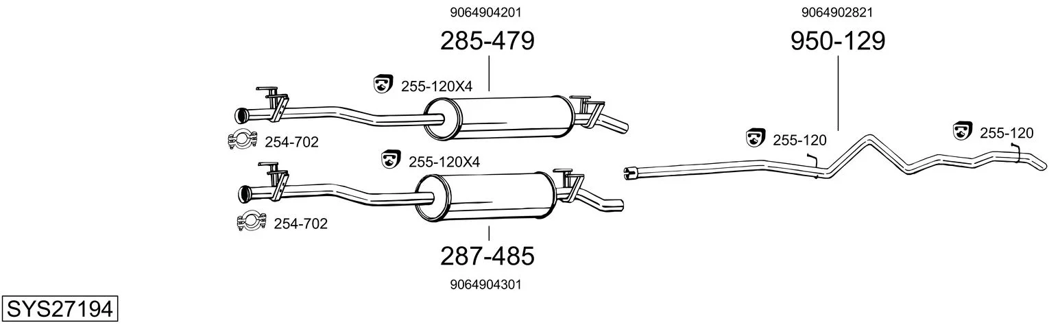 MERCEDES-BENZ SPRINTER 5-t Krabice (B906) 519 CDI / BlueTEC 4x4 (906.653, 906.655, 906.657) - Výfukový systém - kompletní od 3/2009 do 12/2018, 2987 ccm, 140 kW, 190 hp, OM 642.896, OM 642.898, OM 642.986, OM 642.992, Krabice