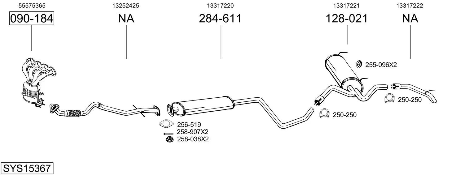 CHEVROLET CRUZE Station Wagon (J308) 1.6 - Výfukový systém - kompletní od 12/2012 do 12/2015, 1598 ccm, 86 kW, 117 hp, LDE, kombi