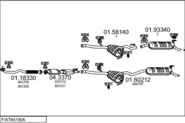 FIAT BRAVO I (182_) 1.9 TD 75 S (182.AF) - Výfukový systém - kompletní od 3/1996 do 10/2001, 1910 ccm, 55 kW, 75 hp, 182 A8.000, Šikmá zadní část