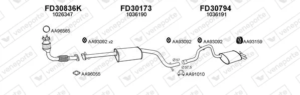 FORD MONDEO II (BAP) 1.8 TD - Výfukový systém - kompletní od 8/1996 do 9/2000, 1753 ccm, 66 kW, 90 hp, RFN, Šikmá zadní část
