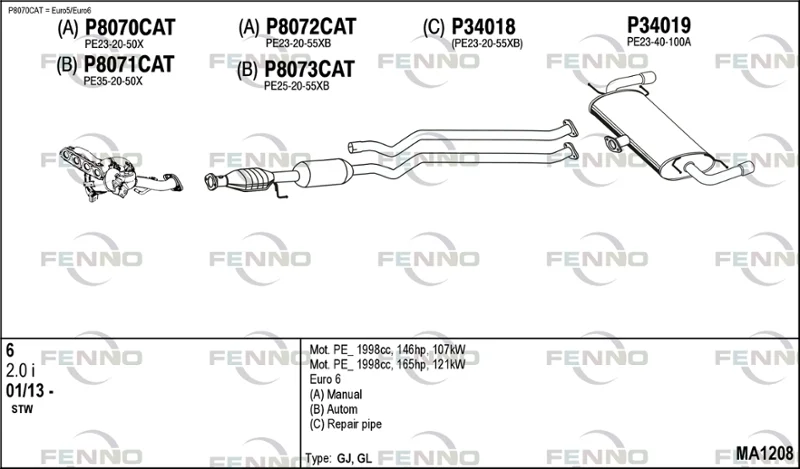 MAZDA 6 kombi (GJ, GL) 2.0 (GJEFW) - Výfukový systém - kompletní od 1/2013, 1998 ccm, 121 kW, 165 hp, PE-VPS, PEXB, PEXL, PEXP, PEY5, PEY7, kombi