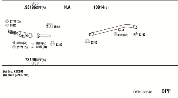 RENAULT KANGOO / GRAND KANGOO II (KW0/1_) 1.5 dCi 90 (KW05, KW08, KW0G, KW11) - Výfukový systém - kompletní od 6/2008, 1461 ccm, 66 kW, 90 hp, K9K 608, K9K 612, K9K 628, K9K 808, velkoprostorová limuzína