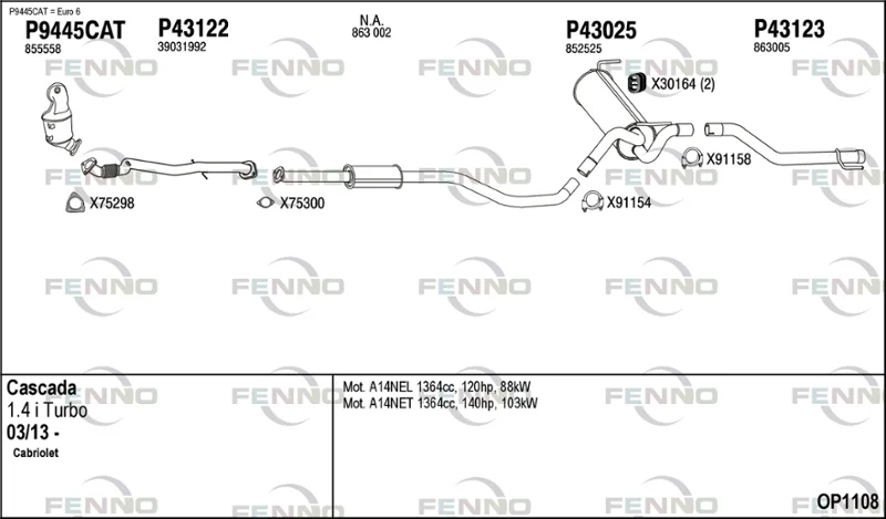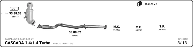 OPEL CASCADA (W13) 1.4 (67) - Výfukový systém - kompletní od 4/2013 do 4/2018, 1364 ccm, 88 kW, 120 hp, A 14 NEL, B 14 NEL, Kabriolet
